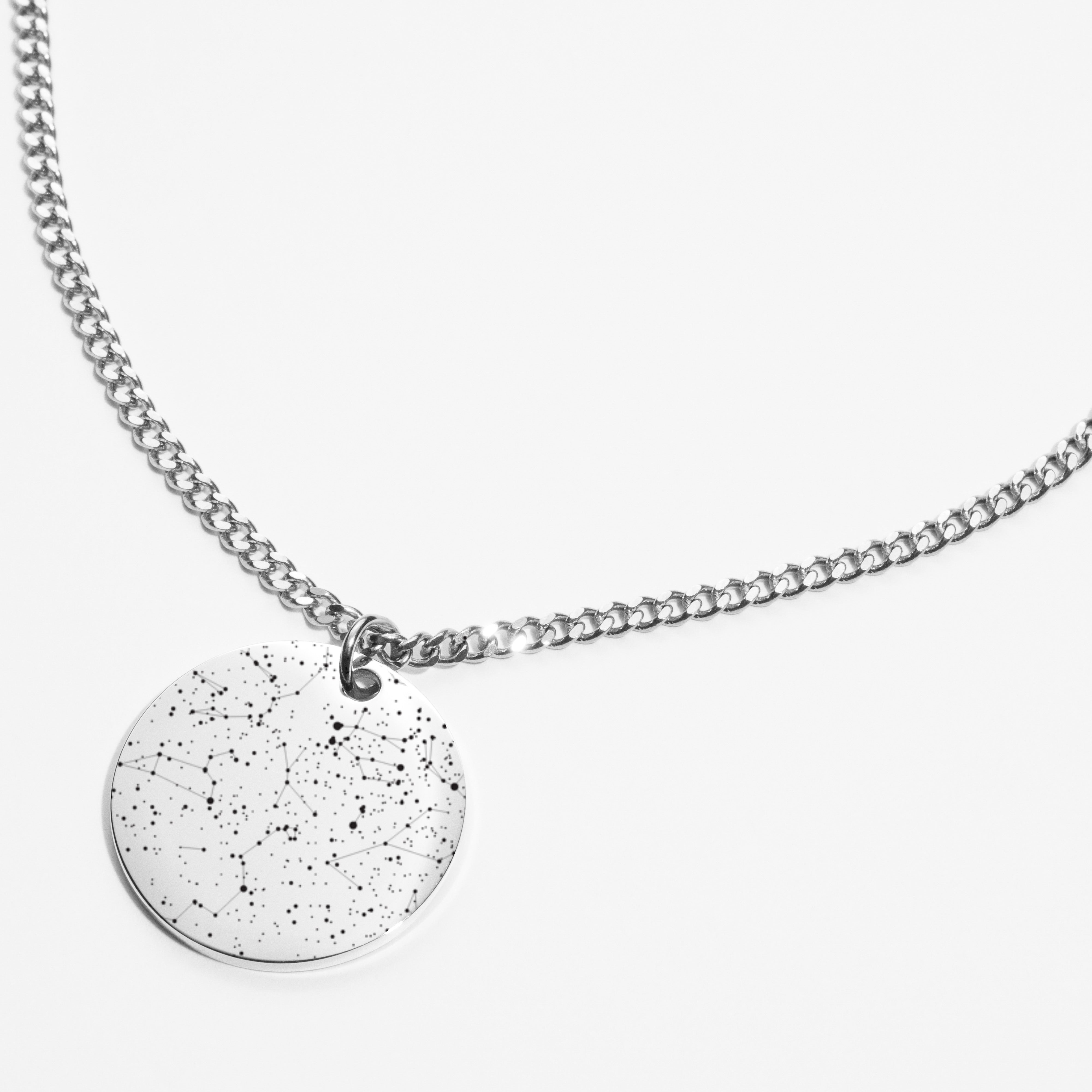 Custom Zicornia Round Necklace - Starmap - Silver