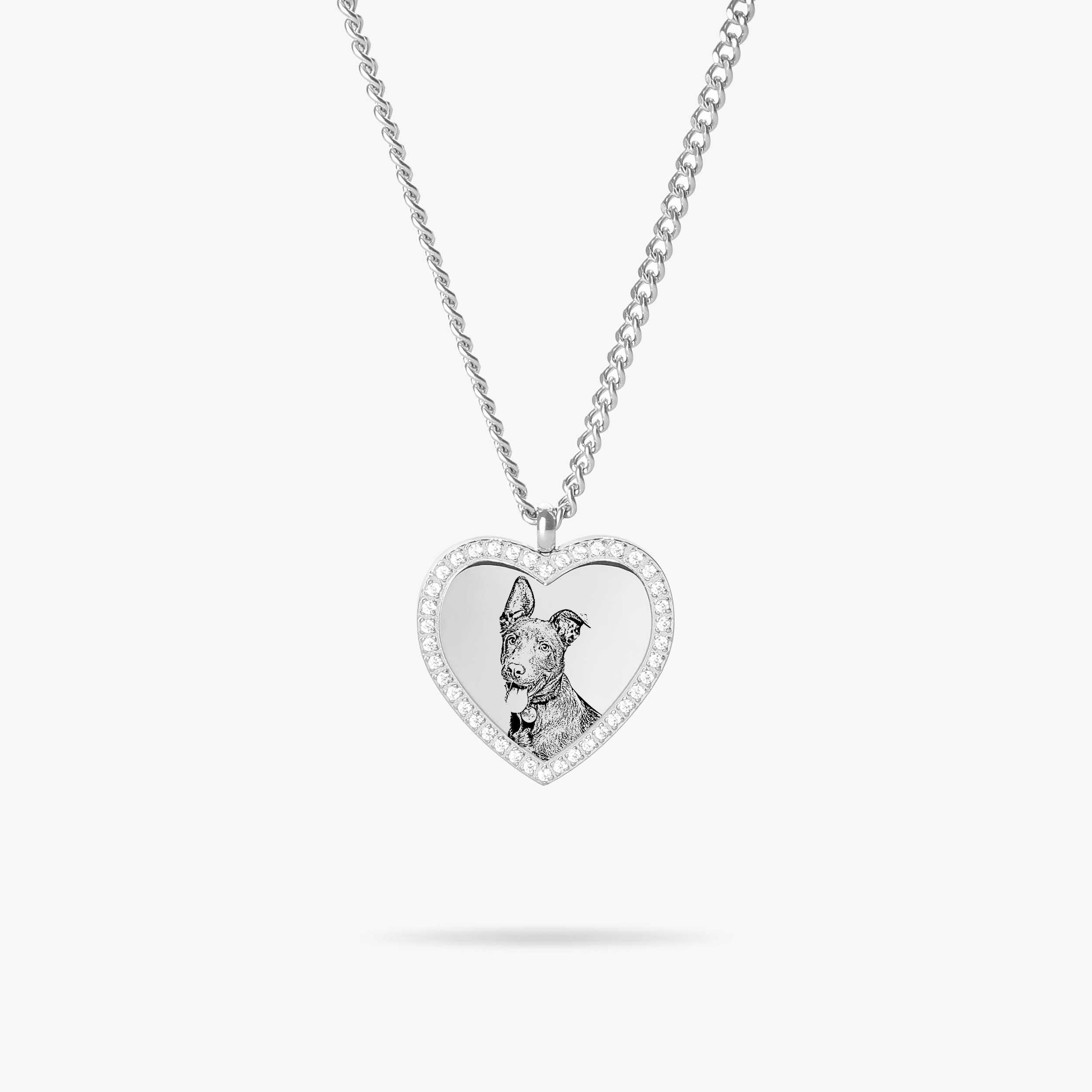 Custom Zicornia Heart Necklace - Pet Outline - Silver